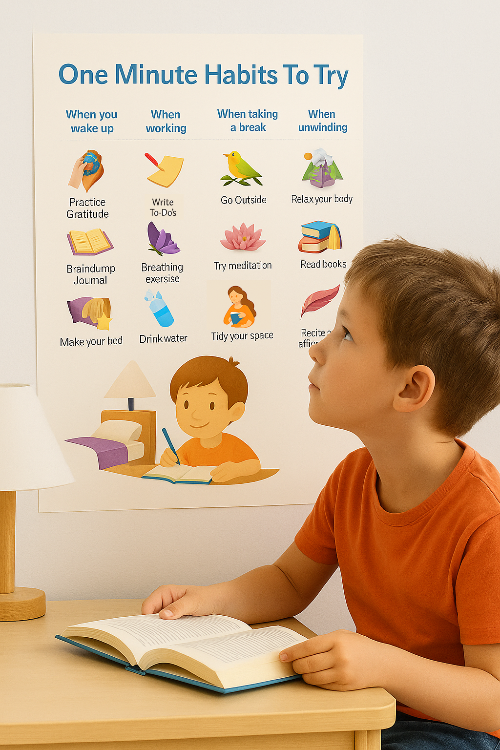 One Minute Habits to Try – Educational Poster for Kids (12x18 in)